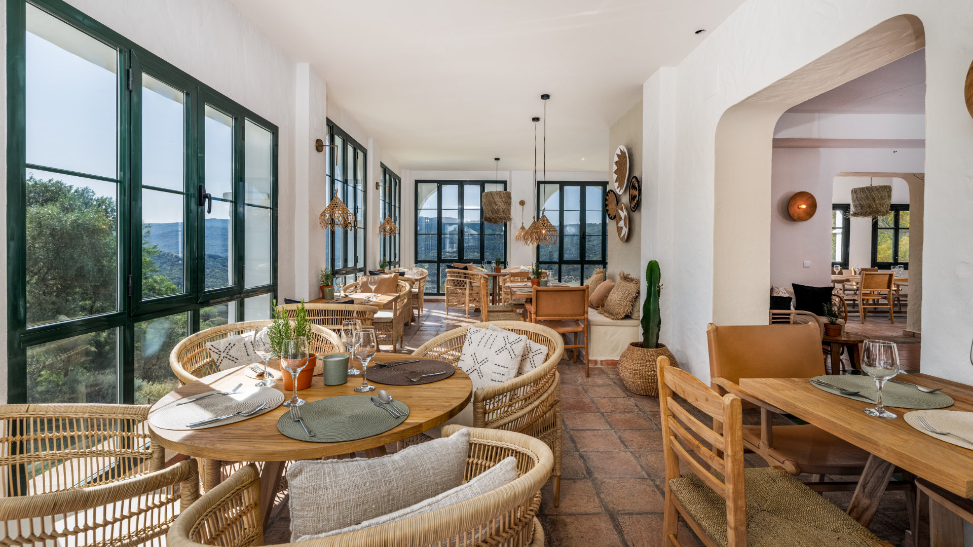 The restaurant has two levels, four patios, and a traditional Andalusian patio with views of the Natural Park and the pool area. The bar serves traditional and innovative cocktails both inside and outside beside the pool.